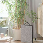 「FÖRNUFTIG」のサイズは奥行き11cm×高さ45cm×幅31cm。重さは約3㎏で、上部のハンドルを持って手軽に持ち運びができます。