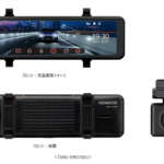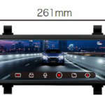 本体は左右260.6×高さ73.6×厚み46.1mmのミラー型で、専用の固定バンドでさまざまなサイズの純正ルームミラーに取り付けられます。「右側カメラ仕様スライド式フロントカメラ」を採用し、 国内で多い右ハンドル車のドライバーと同じ視点で録画が可能です。リアカメラも47.8×38.0×26.0mm(プラケット取り付け時は高さ最大60.5mm)とコンパクト。
