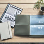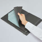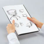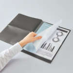 ノートのようにページをめくって書き込んだり、折り返して閲覧したりすることも。A4サイズのクリアホルダーよりひと回り小さい上に薄型なので、持ち運びに便利。