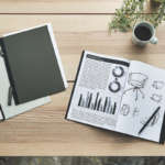 アイデアをメモしたコピー用紙や、今必要な書類などを一冊のノートのようにまとめられます。