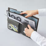 ホルダー型ポケットは、脱落防止ストッパーが付いており、サッと出し入れしたい書類などを一時保管する際に便利。サイドスローポケットは、大きく開いて書類の出し入れがしやすく、パラパラめくって閲覧したい書類にぴったり。バッグの中で広がらないようゴムバンドで留められます。