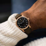 ブロンズケースの色味と風合いを際立たせるグリーンのペンタイル製ストラップは、カーフレザーを裏張りすることで快適な装着感と合わせて高級感も演出。飛行機のシートベルトバックルにインスパイアされたブロンズ製リフト式クラスプが、パイロットウォッチらしさを醸し出しています。