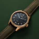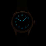 時計ケースはブロンズ製(ケースバックはステンレススチール)で、サイズは41mm径×厚さ12.4mm×ラグ幅20mm、10気圧防水を搭載。風防は内面無反射加工を施した両面ドーム型のサファイヤガラスで、ウォッチフェイスのデザインとともに視認性の向上と確保に大きく貢献しています。