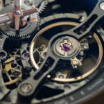 地板や受け、ローターに施された濃いグレーは、“アントラシート”と呼ばれるフランスの伝統色。深みのある色味は、“NAC仕上げ”と呼ばれるプラチナ合金を用いた特殊なコーティング仕上げによるもので、美しさの中に確かな技術が感じられます。