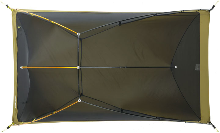 さらに天頂部を入り口側にずらし、サブポールにより前室の起点を遠くに設けることで、大きな前室を作ることも可能になっています。