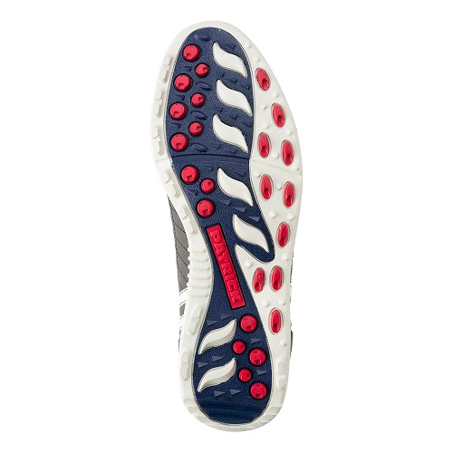 一見するとスマートなスポーツシューズ。これってホントにゴルフシューズ? って目を疑いたくなるほど。ゴルフシューズにありがちな野暮ったさは微塵もない。なんでも、自宅からゴルフ場の往復に使えるシューズをコンセプトに開発されたとか。つまり家から履き替え不要でプレーできちゃうってワケ。このルックスだからコース外でも違和感なし。