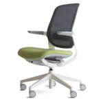 デスク以上に気を使いたいのが、長時間座るチェアです。「タスクチェア」は、体の曲線に合わせた立体フレーム構造を採用したバックレストが特徴。弾力性と通気性に優れた厚みのあるメッシュ素材で背中を支え、座る人の荷重に合わせて背面のテンションが変わるので、調整は不要です。