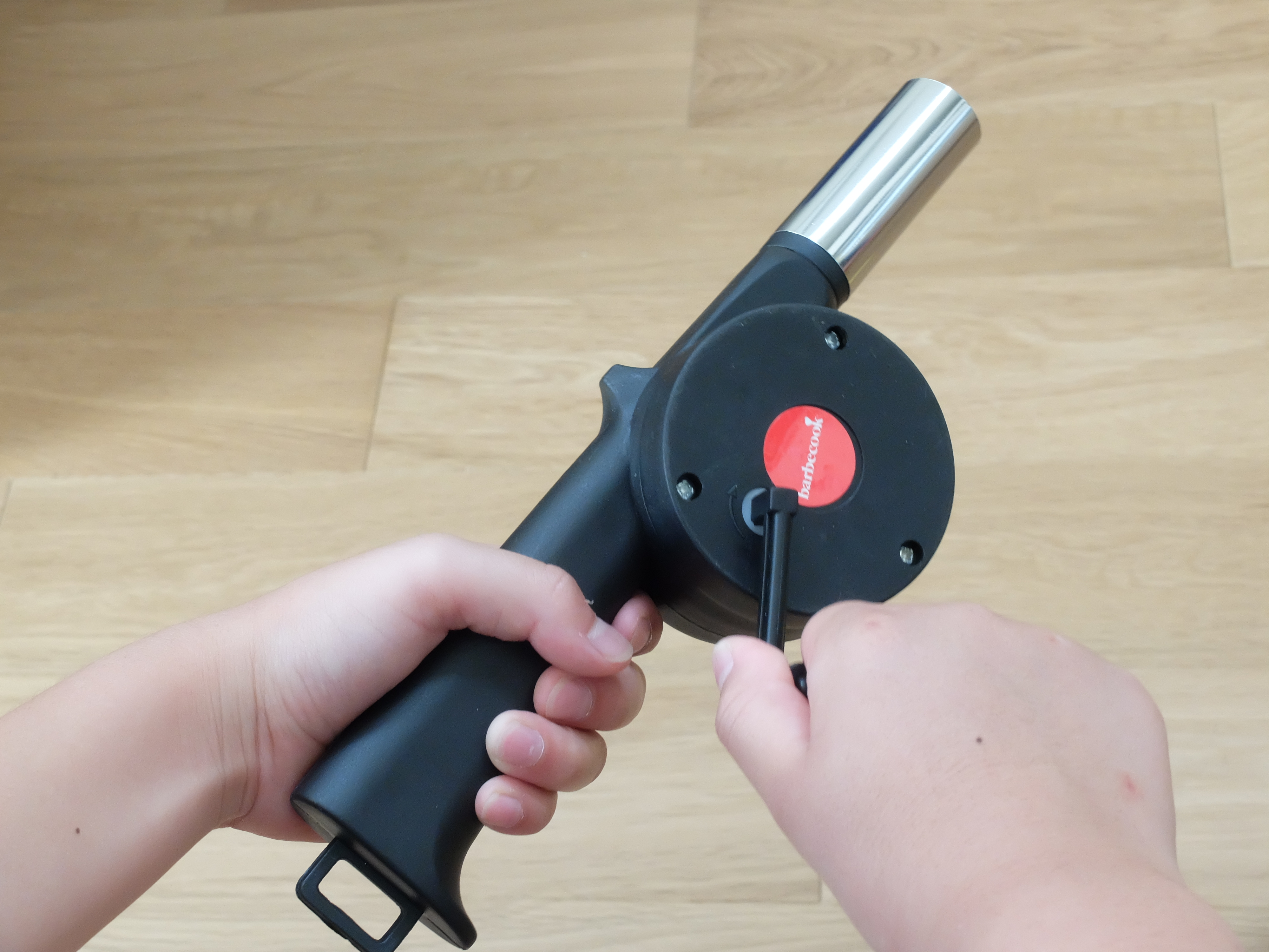 「バーベクック バーベキューファン」は、手元のハンドルを回して風を送る送風機。火を起こす際や、いったん落ちついた炭火の火力を強めたい時に欠かせないアイテムだ。焚き火で忘れがちなアイテムなのだが、うちわであおぐのは効率が悪い。これがあれば火を強めたい場所にピンポイントに酸素を送ることができるのだ。
