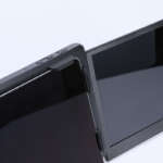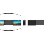 収納時には34×22×4cmまでコンパクトになりますが、使うときには本体両側がバタフライ状に大きく開いて、ふたつの画面が現れるというギミック。画面のない本体中央部のクリップに手持ちのPCのベゼル部分を挟み込み、背面のスタンドを使って角度を調整、固定して使います。
