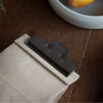 「SUS coffee ビーンズクリップ」は3個で1セット。縦幅10cmのサイズで、豆の入った袋の口をしっかり留めて新鮮に保存できます。このほかにも、書類をまとめて挟むなど、一般的なクリップのように便利に使えます。