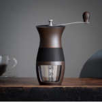 「SUS coffee コーヒーミル」は、コーヒー豆の粗さをレバーで調節することができ、最大6杯分の粉を挽くことが可能。滑らかな曲線を描く本体の中央部分には、持ちやすいように滑り止めが施されています。