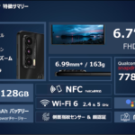 SoCにSnapdragon 778を搭載し、メモリはRAMが6GBで、ROMが128GB。スリムで軽量ながら、バッテリー容量は4000mAhを確保しています。