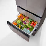 「まんなか野菜 KWCタイプ」は、野菜の取り出しやすさを優先し、冷蔵庫下部にあるふたつの引き出しの上段を“野菜”に適した温度帯に設定した“まんなか野菜”レイアウトが初期設定された大容量冷蔵庫。冷気を直接当てない間接冷却で、野菜の乾燥を抑えながら、新鮮な美味しさを保ちます。