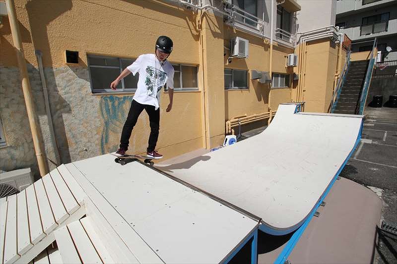中庭にはバスケットゴールの他にスケボーランプも設置