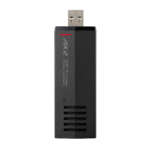 本体はアンテナ内蔵のコンパクトなスティックタイプ。PC本体に直挿しすることもできますが、付属のUSB延長ケーブルを使えば据え置きでの仕様も可能です。通信速度や安定性の向上に寄与する“ビームフォーミング”に対応、自宅内のどこにいてもストレスの少ない快適な通信環境を実現できるのも高ポイントです。