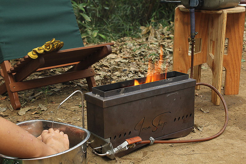 そこで注目したいのが、キャンプギアブランド・アイアンショップがクラウドファンディングサイト・Makuakeにて11月13日より先行予約販売を開始した2次燃焼ストーブ「IRON STOVE (アイアンストーブ) 」(5万4000円~ 11月13日現在)。お湯を好きな時に好きなだけ、自動的に、しかも一定温度で生成することができます。