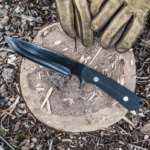 さらに、見た目の特徴にもなっている二段階グリップ式ハンドルを採用。バトニングなど強く握らなければいけない場合はハンドル部分をしっかり握り、料理やフェザースティック作りといった細かい作業をする場合はブレード付け根にある窪みに人差し指を掛ける。このふたつの握り方ができることで、あらゆるシーンで使えるナイフになっています。