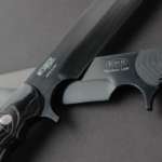 ブレードの鋼材には、ハードに使われることを想定し、切削工具によく使われるハイス鋼(SKH51)を使用。ただハイス鋼は、切れ味は素晴らしいが炭素鋼ゆえ錆びやすい。そこで、不変性、耐腐食性、硬度、低摩耗係数を実現できるDLC(ダイヤモンドライクカーボン)コーティングで表面処理。この結果、カーボンブラックらしい美しく黒い刃が生まれました。