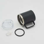 長時間デスクに置いておいてもゴミやほこりが入らないよう、このマグには透明なふたがついています。ふたは匂いがつきにくいPET製。また、ヒーター内蔵部分には水が入らないような構造になっているので、ふたも本体も丸洗いできます。ちなみに、ワイヤレス送電パッドはスマホの充電もできますよ!