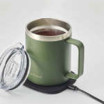 ワイヤレス送電パッドに乗せれば、マグカップに内蔵されたヒーターが発熱する仕組み。