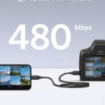 転送速度は、最大480Mbps。プロも御用達の高画素機からの大量のサイズの大きな写真や動画の転送も、短時間で行えます。