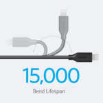 もちろんApple MFi認証のお墨付き。ケーブルは約1万5000回の折り曲げテストをクリアした高い耐久性も自慢です。