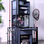 釣り道具を収納できる棚と、棚の側面に最大6本のロッドを固定できるロッドホルダーを搭載。お気に入りの道具をすぐ手に取れるだけでなく、釣具店のディスプレイのように収納できるのが特徴です。