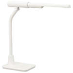 点灯色は昼白色で、100%点灯時の直下照度は約900ルクス(セード高さ約35cmで測定)。セード仰角可動範囲は約140°と広範囲にわたってフレキシブルに角度調整が可能です。