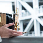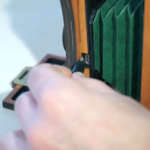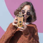 大判フィルムカメラのようなヴィンテージテイストのデザインと、わかりやすい操作性が大きな特徴。富士フイルムの「チェキ」用フィルムシート対応で、レトロな見た目に反して手軽に楽しめるのも魅力です。