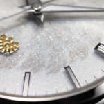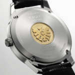 ケースは耐傷性に優れた表面硬化技術“デュラテクトプラチナ”を施したステンレススチールで、ラグ部分にはクリスタルをモチーフにしたデザインを採用。鋭角的なヘールカット形状の時分針も、“Caliber 0100”の持つ性能の高さを思わせます。