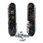 「クライマーライト ウインターマジック スペシャルエディション2021」は、大小のブレードに、マイナスドライバー (3mm/5mm)、プラスドライバー、メガネドライバー、カン切り、せん抜き、コルクせん抜き、はさみ、ピンセットなどに加えて、LEDライトも搭載。合計17の機能を秘めたモデル。長さは91mm。