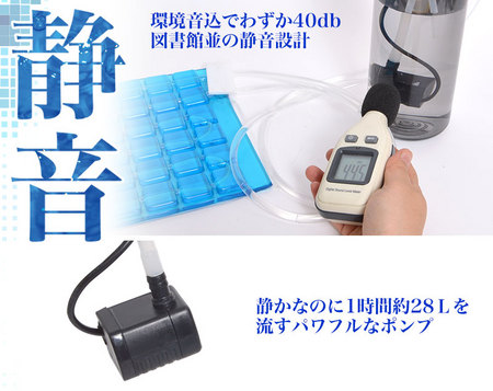 水の循環音が気になるところですが、1時間あたり28リットルのパワフル水流でありながら、動作音が静かなポンプを採用しているので実に静か。1、2、3時間で設定可能な自動オフタイマーもついており、安心して眠れます。
