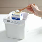 まずヨーグルトを作る時は、牛乳と市販のヨーグルトを混ぜ、本体のセットして待てばいいだけ。専用の容器を使って作ってもいいし、500mlの牛乳パックが入る大きさなので、買ってきたらそのまま手作りヨーグルトにしちゃってもOKです。容器に移し替えなくていいので衛生的だし、食べ終わったら容器はそのまま捨てられるので、洗い物も出なくて助かりますね。
