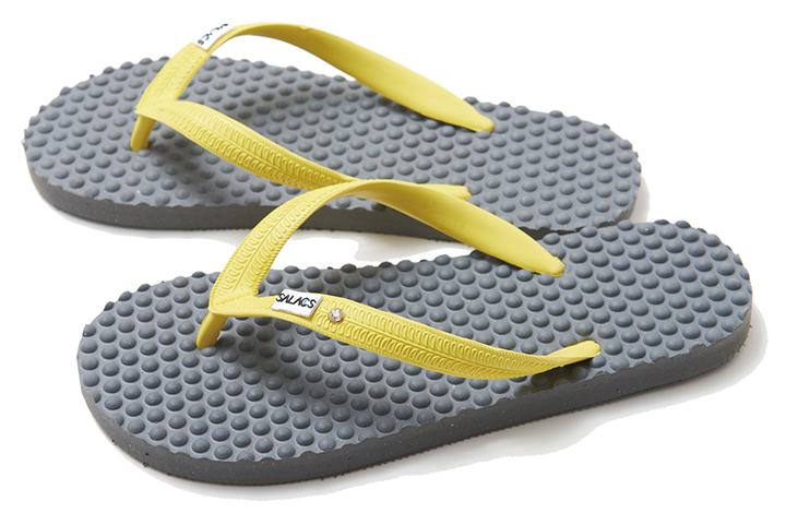 合成ゴムよりも、弾力と柔軟性に優れているのが天然ゴムの魅力。足を入れるとやはり気持ちがいい! クッション性と安定性も十分ある。フットベッドの“ツブツブ”もSALACSのビーチサンダルの特徴だ。ブランドのアイコン的な存在でもあり、足の裏への程よい刺激にもなる。また凹凸の間を空気が流れるせいか、フラットなフットベッドのものに比べると、足のムレも少ない印象。足の裏は思っている以上に汗をかく部分なので、これは結構ありがたいポイントだろう。