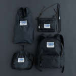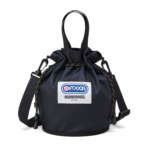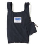 「DRAWSTRING BAG」(巾着)と「ECO BAG」には、を古着や残反(生地)を原料とするリサイクルポリエステル素材“RENU”を使用。バックパック、サコッシュ同様、中央に両者のロゴを配置したワッペンネームを配したデザインです。
