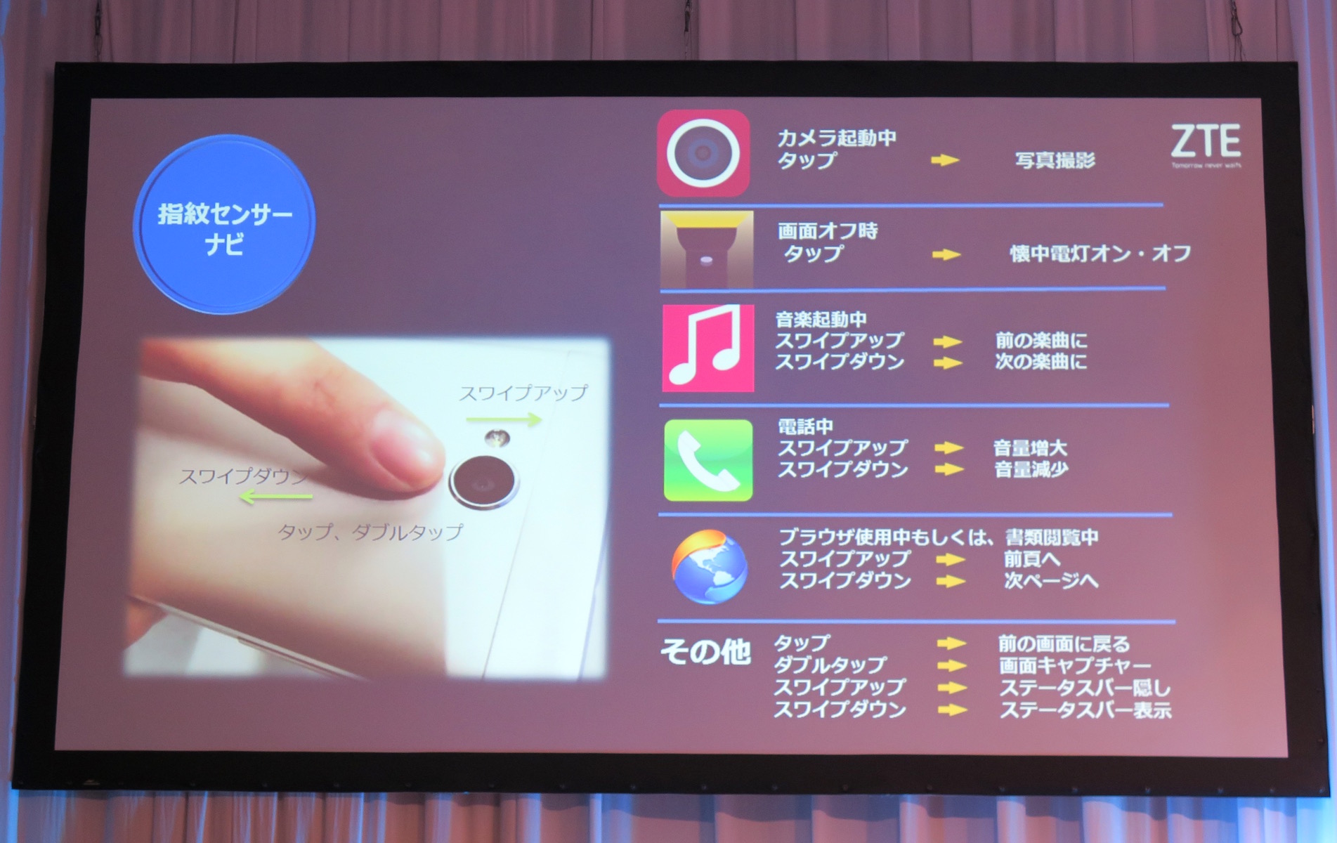 指紋センサーは、指先をあてると0.3秒でロックを解除できるほか、最大5本の指それぞれにアプリを登録して、画面オフの状態からワンタッチで起動できる機能も備えています。さらに、ワンタップで前の画面に戻せて、ダブルタップでスクリーンショットを撮れるといった便利なショートカット機能も備えています。