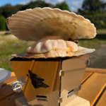 コンパクトで持ち運びに便利で、固形燃料を用意すれば色んな料理に気軽にチャレンジできる「ホタテ用焚き火台」。セットは本体の他に、専用のポーチとコースターが付属されています。