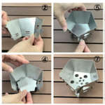 本体は8つのパーツを組み立てて完成させるタイプで、組み立て時間はわずか1~3分。慣れてくれば1分で本体が完成。使うのは固形燃料だけなので、灰捨てなど焚き火台のような面倒な後始末もありません。また、本体はステンレス製なのでサビに強く頑丈です。