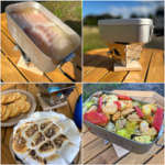 組み立てが完成したら、あとは食材を用意して加熱するだけ。ご飯を炊いたり、ホタテを焼いたり、肉を焼いたりと何でも応用可能。本体が風防代わりになって風に弱い固形燃料を守ってくれるので、安定した火力を得られます。料理が完成したら、お湯を沸かして熱燗で一献なんてオツな使い方も。