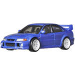 世界ラリー選手権(WRC)での勝利を目指して誕生した限定生産された「三菱ランサーエボリューション」は、ランエボと呼ばれ親しまれている、まさに走り屋御用達の4ドアセダンのスポーツカー。今回、ホットウィール初登場となるランエボに選ばれたのは1999年に登場した「エボⅥ」。特徴的なリアウイングと圧倒的な加速力で人気を集めた1台で、映画『ワイルスピード』にも登場しています。