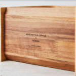 「カッティングボード」は、朝食時にパンやフルーツをのせたり、チーズをのせてワインとともに楽しんだりと、幅広く使えます。ブルーボトルのロゴをイメージした柔らかな曲線や、木の素材を活かしたデザインが、部屋のインテリアとして温かみを添えてくれます。