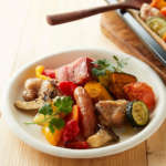 好きな食材を好きな分量だけ角皿に載せて“まかせて調理”キーを押した後、調理モード「網焼き・揚げる」「焼く」または「炒める」「蒸す・ゆでる」のいずれかを選ぶと、冷凍や冷蔵、常温の食材が混在していても、均一に熱を通して同時に調理できます。これは、低温の食材により多くの熱が加わるという過熱水蒸気の特性によるのだそう(「AX-HA20」では、冷凍食材のあり・なし選択が必要)。
