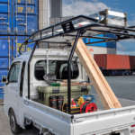 フレームは高い剛性のスチール製で、サイズは全長3050×全幅1305×全高1490mm、耐荷重は100kg。天面部となるルーフラック(荷台スペース)に位置を変えられるスライド式バーが備わり、はしごや木材、サーフボードやカヤックなど、長さや重さのあるものを安定して積載できます。