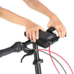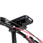 注目したいのが、シリーズ独自のバッテリー機構。一般的なeバイクでは、バッテリーはメインフレームに外付けされるか、あるいはフレームやシートポスト内部に収められていることが多いのですが、この“ULTRA LIGHT E-BIKE TRANS MOBILLY NEXT”シリーズでは車体そのものの持ち運びやすさを重視して、小型サイズのモバイルバッテリーをハンドル上部に装着させる方法を採っています。