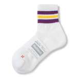 「和紙配色3本ラインソックス」は伝統的な3本ラインのデザインを採用。白色も鮮やかな白そのもので、かえって新鮮な印象を与えてくれます。カラーバリエーションはブルー×レッド、グリーン×イエロー、パープル×イエロー、ブラウン×オレンジの4色。高品質でありながら手頃な価格のためギフトにも最適です。サイズは25~27cm。和紙を配合して履きやすくなった伝統的デザインの靴下、一度試してみませんか?