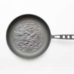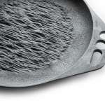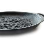 高い熱伝導と優れた蓄熱性という鋳物の特性のおかげで、表面をさっと焼いて旨みを閉じこめ、余熱でじっくり食材内部に火を通すという理想の焼き調理が可能に。一方で調理器具としての実用性もしっかり配慮し、全体の重量バランスを綿密に計算。考え抜かれた設計はこれまでの「おもい」シリーズ同様ですが、ご覧の通り今回発売の《頂-ITADAKI》2製品では焼き面中央にギザギザした傷のような凸凹が施されています。