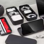 収納アイテムの整理に便利な仕切り板も付いているので、移動中の振動で中に入れたモノが動いたり、ケーブルが絡んで取り出しづらくなったりすることもありません。下段中蓋にはApplePencilやApple Watchの替えバンドが固定でき、上段中蓋はスマホスタンドとしても使えるようになっています。