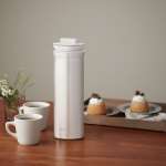 幅10×奥行9.5×高さ29cmというスリムな円筒型ながら約1Lの大容量のステンレス製魔法びん「サーモス ステンレスポット(TTD-1000)」。真空断熱構造により約10時間の保温効力・保冷効力を誇り、温かいドリンクは温かいままに、冷たいドリンクは冷たいままに長時間キープしてくれます。