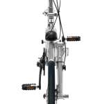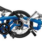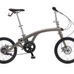 また前輪には独自開発のテレスコピック式折りたたみ機構を内蔵した片持ちフロントフォークを採用、これにより前輪と後輪を平行かつ同軸上に、美しく重ねられるようになっています。