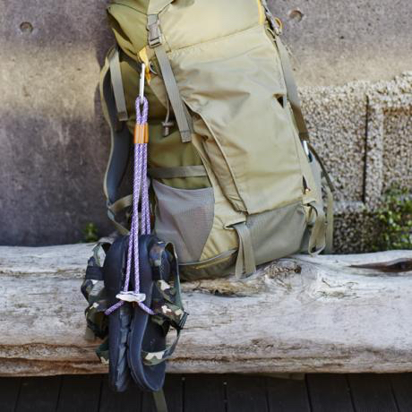 日本の伝統色をイメージして京都の組紐屋にオーダーして作ったストラップや、味のあるアルミパーツなどファッション性も抜群。野外フェスなどでも活躍してくれそうです。お気に入りのシューズをセットして、壁にぶら下げてインテリアなんていうのもアリかも!